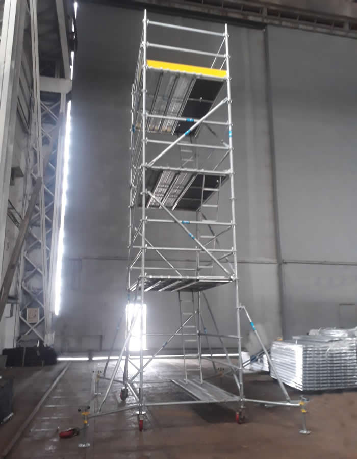 Panolar 48X3mm. ve çapraz bağlantılar 34X2.5mm. metal kalaslar 1.5mm sacdan imal edilmektedir. Mobil iskele mekanik testlere tabi tutulmuş standart borulardan üretilir. Üretimlerimizde otomatik gazaltı kaynak makineleri kullanılır.